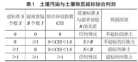 (3)土壤污染與土壤物質超標綜合判別。判別指標可選用土壤綜合環(huán)境指數CEI,其計算方法同規(guī)范HJ/T166中的“綜合污染指數CPI”計算方法,但依據CEI判別土壤污染與質量超標時,應將規(guī)范中的表12-2修改為表1的形式。