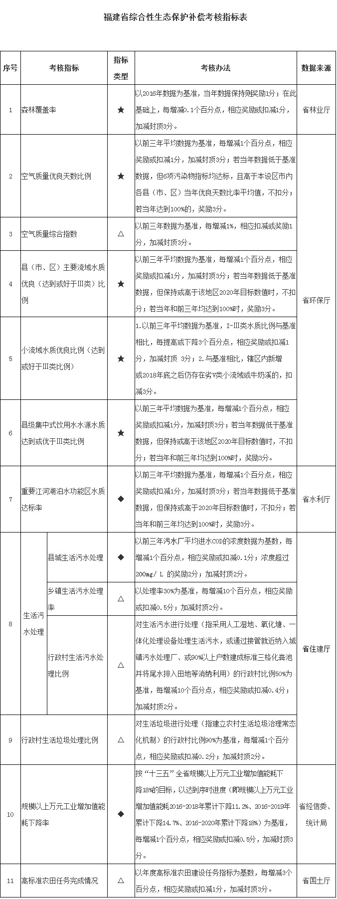 2.福建省綜合性生態(tài)保護(hù)補(bǔ)償考核指標(biāo)表