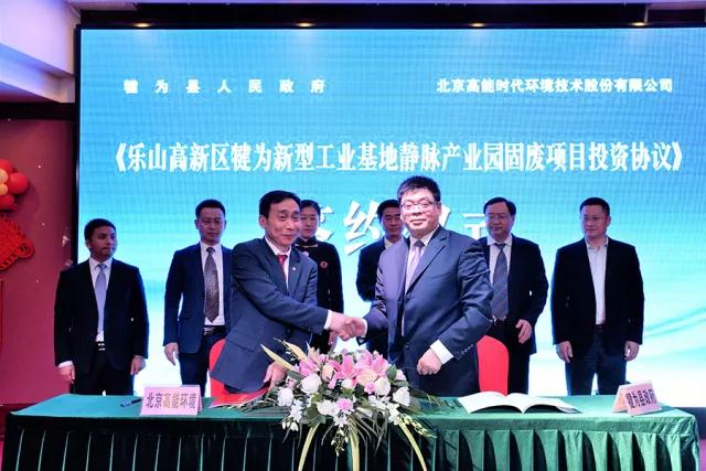 高能環(huán)境總經(jīng)理陳望明與犍為縣委副書記、縣長陳建東正式簽訂投資協(xié)議