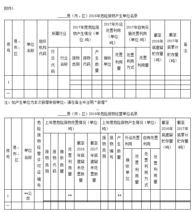 附件:1. 縣(市、區(qū))2017年度危險廢物產(chǎn)生單位與經(jīng)營單位名錄