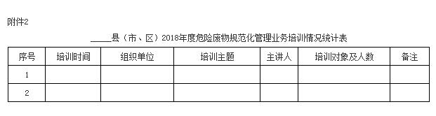 4月30日前,各縣、市、區(qū)環(huán)保局要對轄區(qū)內(nèi)危險廢物產(chǎn)生和經(jīng)營單位開展危險廢物相關(guān)知識培訓,認真學習相關(guān)法律法規(guī),新修訂的危險廢物規(guī)范化管理指標體系、危險廢物產(chǎn)生單位管理計劃制定指南、新版危險廢物名錄、固體廢物管理信息系統(tǒng)等,做好培訓記錄,培訓情況(附件2)于5月底前報市局。