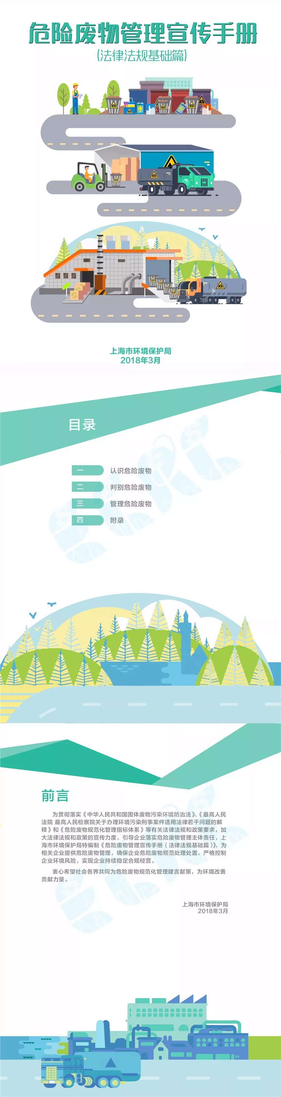 為提升企業(yè)環(huán)境保護(hù)意識(shí),規(guī)范危險(xiǎn)廢物管理,上海市環(huán)保局組織編制本《 危險(xiǎn)廢物管理宣傳手冊(cè) ( 法律法規(guī)篇 ) 》 ,供企業(yè)參考使用。希望廣大企事業(yè)單位主動(dòng)承擔(dān)主體責(zé)任,規(guī)范自身行為,合規(guī)守法經(jīng)營(yíng)。
