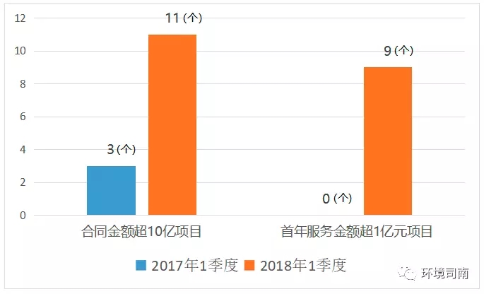 ▲ 2018年1季度,合同金額超10億項(xiàng)目11個(gè),首年服務(wù)金額超1億元9個(gè)。