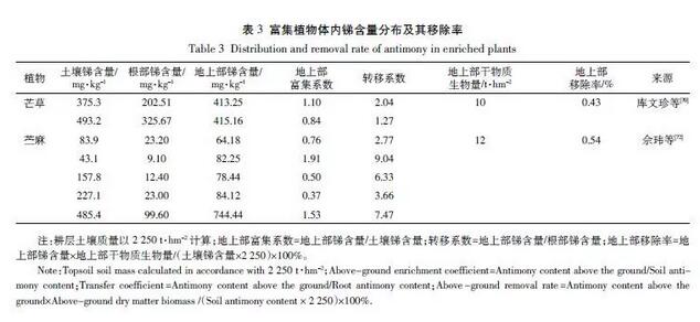 綜上所述,在目前研究較多的2 種銻富集植物中,雖然對(duì)銻均有較好的富集效果,但整體移除率不高(移除率基本≤1%),遠(yuǎn)低于其他重金屬的富集植物在土壤污染修復(fù)中的移除效果(移除率基本≥10%),實(shí)際應(yīng)用潛力不高,尤其是周期較短的農(nóng)田土壤修復(fù)中。