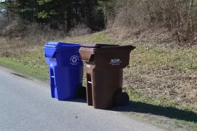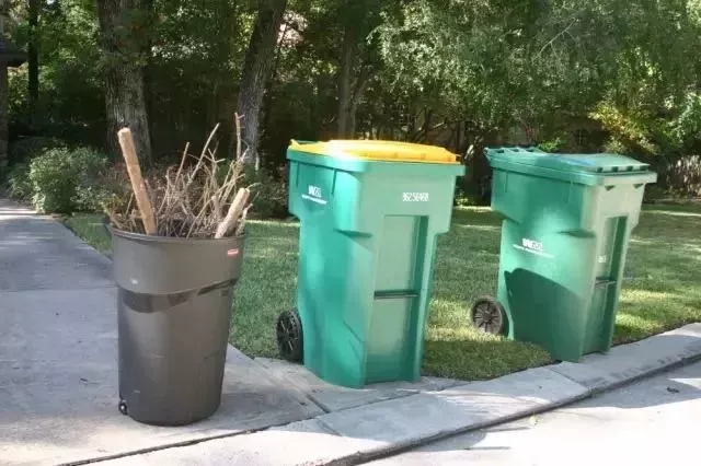 在美國鄉(xiāng)村,每家每戶都有一個帶輪子的垃圾箱,