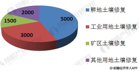 綜合耕地、工業(yè)用地、礦區(qū)用地及其他用地規(guī)模,按照土壤修復平均2萬元/畝計算,保守估計我國土壤修復市場已經(jīng)超過1萬億元。
