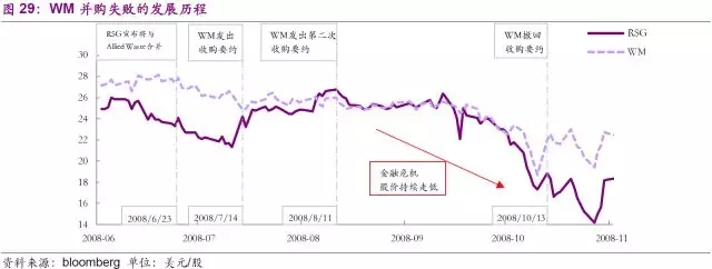值得注意的是公司發(fā)起收購的時(shí)間。2008年6月23日,RSG宣布將與Allied Waste合并,而當(dāng)時(shí)Allied Waste和RSG分別是美國第二、第三大固廢公司。消息宣布后一個(gè)月內(nèi),WM就向RSG提出了收購要約,但未能實(shí)現(xiàn)。
