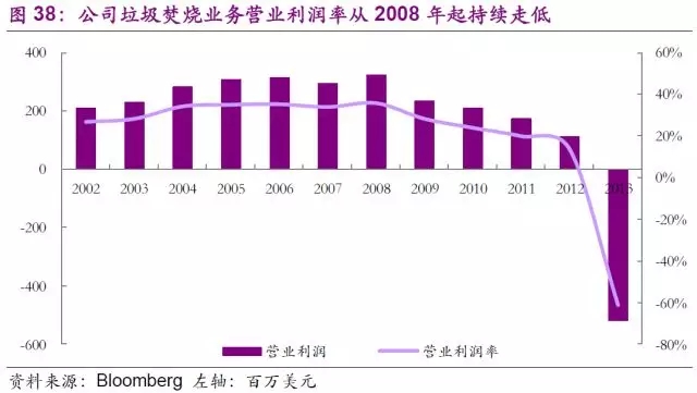 一步分析,Wheelabrator營業(yè)收入走低的核心因素是垃圾焚燒發(fā)電上網(wǎng)電價(jià)的持續(xù)下跌。再加上Wheelabrator原來簽訂的數(shù)個(gè)高于現(xiàn)上網(wǎng)電價(jià)的長期合同到期,需要按現(xiàn)行電價(jià)重新續(xù)簽,公司認(rèn)為Wheelabrator已無法為公司提供穩(wěn)定的收益,并在2013年確認(rèn)了高達(dá)4.83億美元的商譽(yù)減值,隨后于2014年宣布剝離Wheelabrator的全部業(yè)務(wù)。