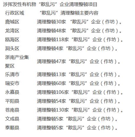 2.大力開展工業(yè)園區(qū)廢氣整治。重點園區(qū)要編制廢氣專項整治方案,開展大氣污染源排查工作,建立涉氣排放企業(yè)清單,明確具體整治要求和重點整治項目,建立“網(wǎng)格長”制度,每個網(wǎng)格、企業(yè)落實到人,全力推進整治工作。各縣(市、區(qū))要確定重點整治工業(yè)園區(qū)(浙南產(chǎn)業(yè)集聚區(qū)確定重點區(qū)塊),全面開展工業(yè)園區(qū)大氣污染整治。