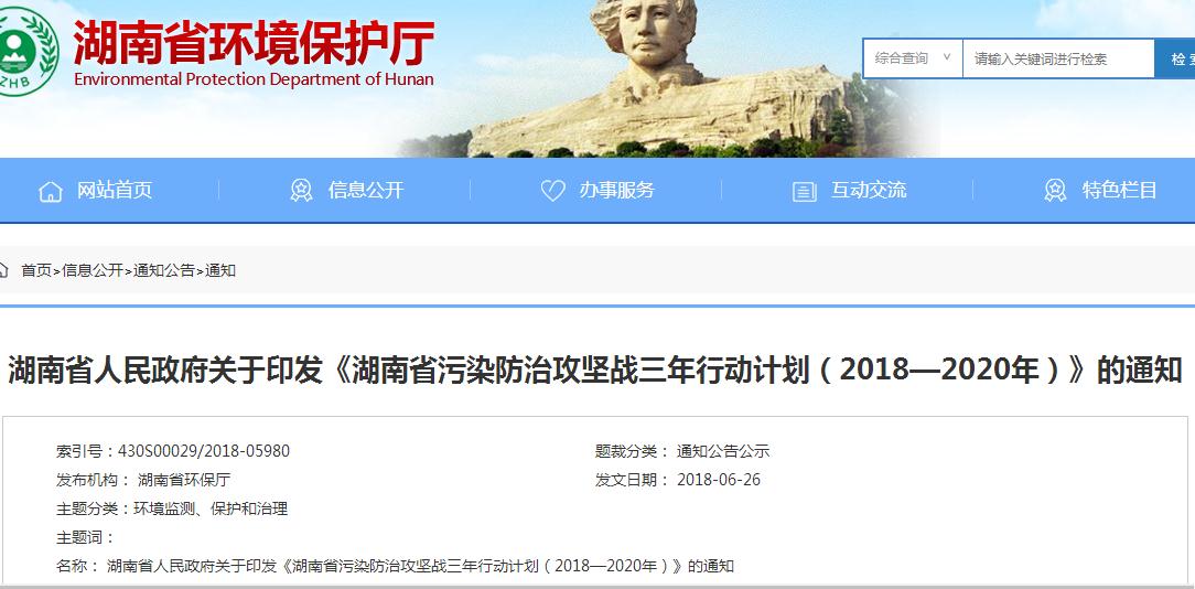 6月26日湖南省環(huán)保廳發(fā)布湖南省人民政府關(guān)于印發(fā)《湖南省污染防治攻堅(jiān)戰(zhàn)三年行動(dòng)計(jì)劃(2018—2020年)》的通知,內(nèi)容如下: