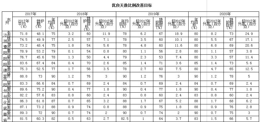 14. 推動(dòng)城市環(huán)境空氣質(zhì)量達(dá)標(biāo)。突出問(wèn)題導(dǎo)向和目標(biāo)導(dǎo)向,分析原因,精準(zhǔn)施策,編制城市環(huán)境空氣質(zhì)量達(dá)標(biāo)規(guī)劃并向社會(huì)公布,強(qiáng)化專項(xiàng)攻堅(jiān)治理,推動(dòng)一批城市環(huán)境空氣質(zhì)量達(dá)標(biāo)。到2020年,郴州市、張家界市、益陽(yáng)市、吉首市等城市實(shí)現(xiàn)環(huán)境空氣質(zhì)量達(dá)標(biāo)。