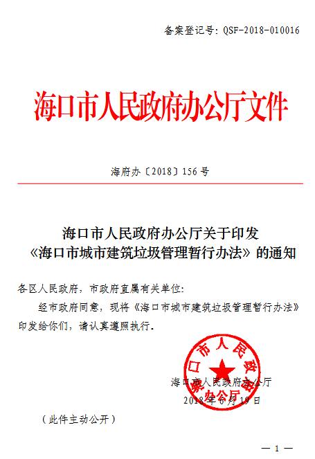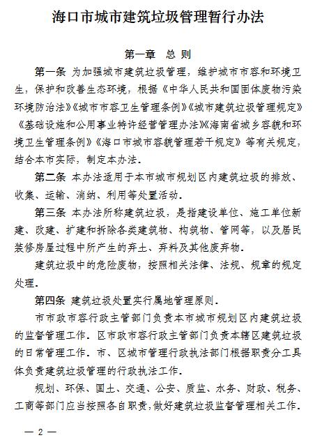 日前???/a>市人民政府辦公廳印發(fā)《海口市城市建筑垃圾管理暫行辦法》(以下簡(jiǎn)稱《辦法》),明確要求對(duì)建筑垃圾處置實(shí)行特許經(jīng)營(yíng)管理,企業(yè)或個(gè)人如果違規(guī)處置將受處罰?!掇k法》從今年9月1日起施行,有效期兩年。