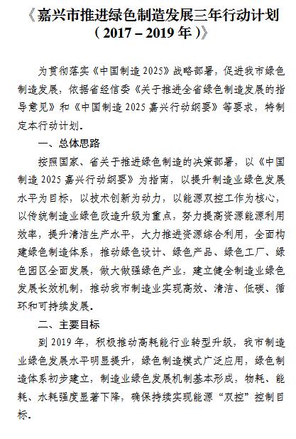 日前浙江省嘉興市正式出臺(tái)《嘉興市推進(jìn)綠色制造三年行動(dòng)計(jì)劃》,以加快綠色制造行動(dòng)在嘉興市的貫徹落實(shí),提升全市制造業(yè)綠色化發(fā)展水平。