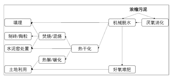 為了解決上述問題,應(yīng)該采用逆向設(shè)計(jì)代替?zhèn)鹘y(tǒng)的正向設(shè)計(jì),從污泥的最終出路出發(fā)對全流程進(jìn)行布置。嚴(yán)格來說,污泥的處置方式只有填埋、土地利用和建材化等。污泥填埋可以消納全部污泥,是現(xiàn)階段許多城市不得不采用的處置方式。然而,從填埋場運(yùn)行管理以及政策導(dǎo)向看,盡量減少進(jìn)入填埋場的水分和有機(jī)質(zhì)是污泥填埋的主要趨勢。