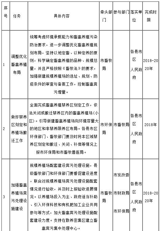 長(zhǎng)治市畜禽糞污處理和資源化利用工作任務(wù)分解表
