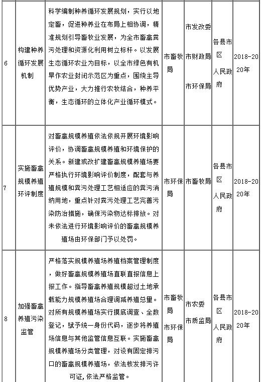 (三)落實(shí)屬地管理責(zé)任制度。各縣市區(qū)人民政府對(duì)本行政區(qū)域內(nèi)的畜禽糞污處理和資源化利用工作負(fù)總責(zé),在工作推進(jìn)中,依法明確部門職責(zé),細(xì)化任務(wù)分工,完善政策措施,加大資金投入,強(qiáng)化日常監(jiān)管,健全工作機(jī)制,確保各項(xiàng)任務(wù)落實(shí)到位。各縣市區(qū)人民政府要按照本方案的主要目標(biāo)要求,確定分年度重點(diǎn)任務(wù),列出工作清單,于2018年7月底前抄送市畜牧局備案。(市畜牧局牽頭,市環(huán)保局參與)