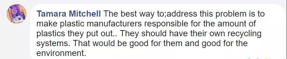 “解決這個(gè)問題最好的方式應(yīng)該是讓那些塑料制造商對(duì)他們生產(chǎn)的塑料負(fù)責(zé),他們應(yīng)該有自己的回收系統(tǒng),這對(duì)他們自己有利的同時(shí)也有益于我們的環(huán)境。”