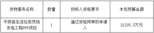 平陰縣生活垃圾焚燒發(fā)電工程PPP項(xiàng)目公開招標(biāo)公告
