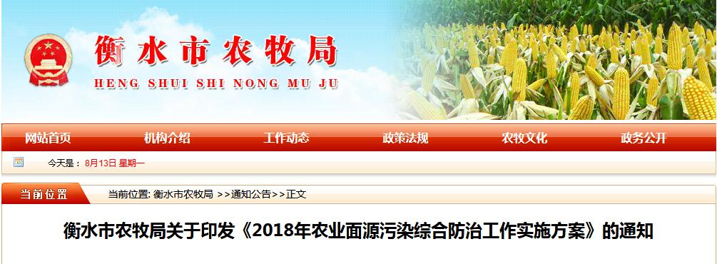 衡水市農(nóng)牧局關(guān)于印發(fā)《2018年農(nóng)業(yè)面源污染綜合防治工作實(shí)施方案》的通知