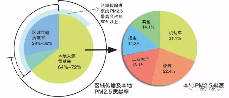 2014年4月,北京正式發(fā)布PM2.5來源解析最新研究成果:全年P(guān)M2.5來源中,區(qū)域傳輸貢獻約占28%至36%,本地污染排放貢獻占64%至72%。在本地污染貢獻中,機動車排放比例最高,達31.1%。一些特定空氣重污染過程中,通過區(qū)域傳輸進京的PM2.5會占到總量的50%以上。