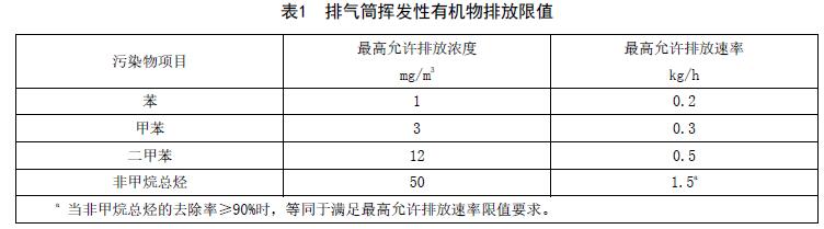 5.2.1 排氣筒揮發(fā)性有機物排放濃度和排放速率應執(zhí)行表1規(guī)定的限值。