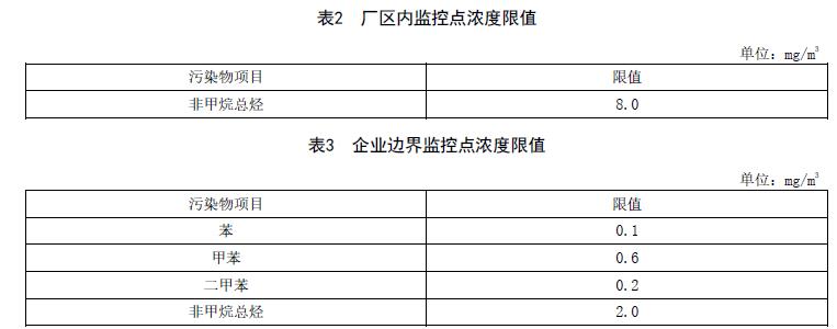 5.3.1 無組織排放監(jiān)控點濃度限值應執(zhí)行表2、表3 的規(guī)定。