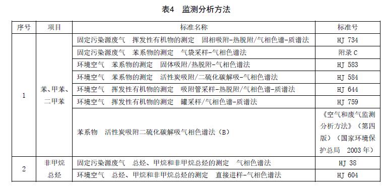 揮發(fā)性有機物濃度的測定應采用表4所列的方法標準或國家主管部門認定的等效方法。