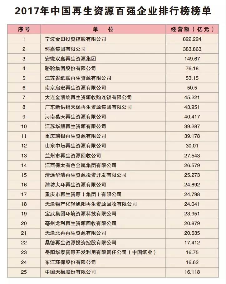 原標(biāo)題:官宣!2017中國(guó)再生資源百?gòu)?qiáng)企業(yè)經(jīng)營(yíng)狀況調(diào)查報(bào)告!附百?gòu)?qiáng)企業(yè)排行榜單新鮮出爐!