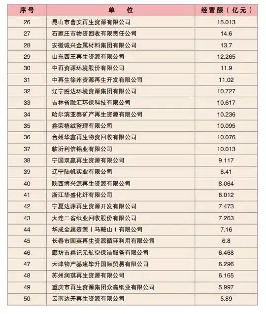 由中國(guó)再生資源回收利用協(xié)會(huì)組織的“2017年度企業(yè)經(jīng)營(yíng)狀況調(diào)查”已經(jīng)結(jié)束。本年度有350家企業(yè)參與,根據(jù)企業(yè)提供的經(jīng)營(yíng)情況,我們認(rèn)真分析、研究,編制了“2017年度再生資源企業(yè)經(jīng)營(yíng)狀況調(diào)查報(bào)告”,并根據(jù)年度經(jīng)營(yíng)額排定了“2017年再生資源行業(yè)百?gòu)?qiáng)企業(yè)榜單”。