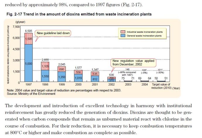 上圖:日本垃圾焚燒二惡英排放量變化(來(lái)源:日本環(huán)境部)