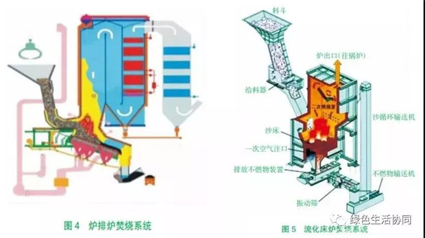 其中焚燒爐是垃圾焚燒發(fā)電的核心,決定著垃圾處理的效果和運(yùn)行的經(jīng)濟(jì)性。焚燒爐充分燃燒后才能達(dá)到無(wú)害化和減量化的目標(biāo)。常用的焚燒爐有爐排爐、流化床焚燒爐、熱解焚燒爐、回轉(zhuǎn)窯等類型。下面介紹最為常見的爐排爐和循環(huán)流化床兩種模式。