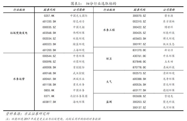 我們選取了垃圾焚燒發(fā)電、水務(wù)運(yùn)營(yíng)、水務(wù)工程、環(huán)衛(wèi)、大氣和監(jiān)測(cè)6個(gè)細(xì)分領(lǐng)域內(nèi)的代表性上市公司,通過(guò)這些上市公司的2017年年報(bào)財(cái)務(wù)數(shù)據(jù)計(jì)算細(xì)分行業(yè)指標(biāo)進(jìn)行比較。