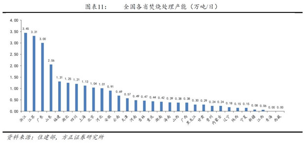 從垃圾焚燒產(chǎn)能角度看,浙江、江蘇、廣東三省垃圾焚燒產(chǎn)能超過(guò)3萬(wàn)噸/日,甘肅、貴州、內(nèi)蒙古、遼寧、陜西、寧夏、新疆、江西8省垃圾焚燒產(chǎn)能不足3000噸/日,而青海和西藏更是尚無(wú)垃圾焚燒項(xiàng)目。