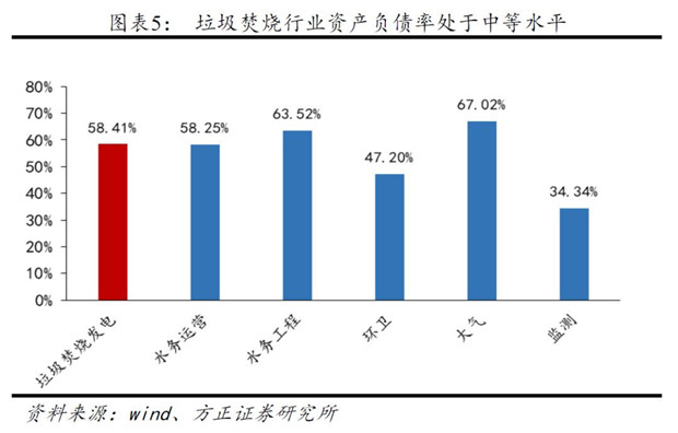 垃圾焚燒發(fā)電項(xiàng)目大多采取BOT等運(yùn)營(yíng)模式,一般在項(xiàng)目建設(shè)期通過(guò)SPV公司進(jìn)行項(xiàng)目配套融資,商業(yè)模式屬性導(dǎo)致垃圾焚燒行業(yè)具有天然的重資產(chǎn)屬性。
