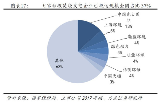 從上市公司已投運(yùn)的垃圾焚燒發(fā)電項(xiàng)目來(lái)看,截止2017年底,七家垃圾焚燒發(fā)電企業(yè)已投運(yùn)規(guī)模合計(jì)10.62萬(wàn)噸/日,占全國(guó)已投運(yùn)項(xiàng)目的37%。