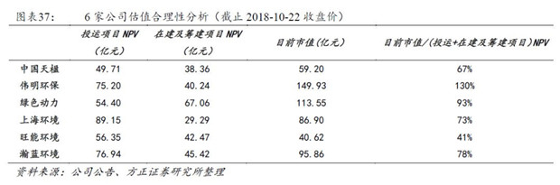 我們整理6家上市公司的已投運(yùn)項(xiàng)目,通過(guò)計(jì)算單個(gè)項(xiàng)目NPV加總,得到目前6家上市公司的已投運(yùn)項(xiàng)目的現(xiàn)金流折現(xiàn)價(jià)值。