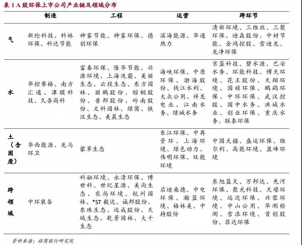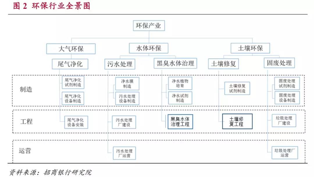 環(huán)保產(chǎn)業(yè)除了按照環(huán)保領(lǐng)域可以分為氣、水、土三個(gè)方面以外,從產(chǎn)業(yè)鏈的角度還可以分為環(huán)保制造,環(huán)保工程和環(huán)保運(yùn)營三個(gè)環(huán)節(jié)。