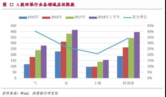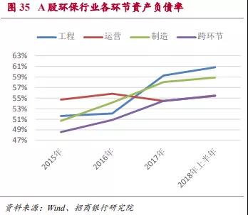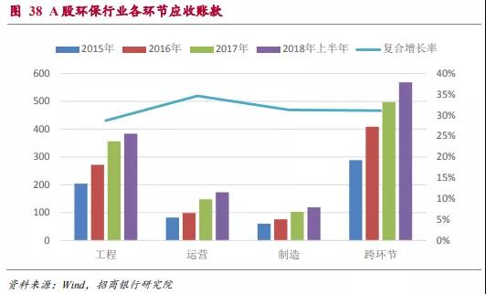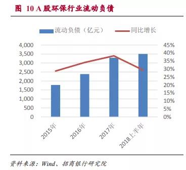 近年來A股環(huán)保行業(yè)應(yīng)收賬款增速一直維持在30%及以上的增速,因此盡管環(huán)保行業(yè)整體的資產(chǎn)負(fù)債率水平還相對(duì)可控,但短期流動(dòng)性的風(fēng)險(xiǎn)是需要重點(diǎn)關(guān)注的方面。