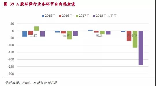 根據(jù)各環(huán)節(jié)自由現(xiàn)金流的分析,工程環(huán)節(jié)的自由現(xiàn)金流在2017年出現(xiàn)了轉(zhuǎn)正的情況,這很有可能與我國在工程環(huán)節(jié)推行PPP模式有關(guān),這一模式對(duì)改善工程類企業(yè)的現(xiàn)金流有明顯的益處。而運(yùn)營環(huán)節(jié)的自由現(xiàn)金流在2017年出現(xiàn)惡化,也是低于市場整體預(yù)期的。