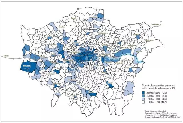 PPP模式可能使項目更加物有所值,公共預算支出更有效率,但單純依靠政府付費,財政可承受能力終歸是有上限的。因此,如何挖掘項目本身的商業(yè)潛力和拓展公共支出的來源就顯得尤為重要。大型基礎設施項目往往具有外部性,可以采用適當?shù)姆椒▽⑵渫獠啃б鎯?nèi)在化,來反哺項目本身。橫穿倫敦108公里的伊麗莎白線的總建設預算達148億英鎊,計劃通過稅收增量融資和開發(fā)基礎設施費的模式來將地鐵帶動的土地和物業(yè)價值升值反饋給軌道項目。一方面,在未來24-30年內(nèi),對該軌道項目收益的價值5.5萬英鎊以上的商業(yè)物業(yè)額外征收2%的商業(yè)物業(yè)稅(BRS-Business Rate Supplement),如下圖所示。