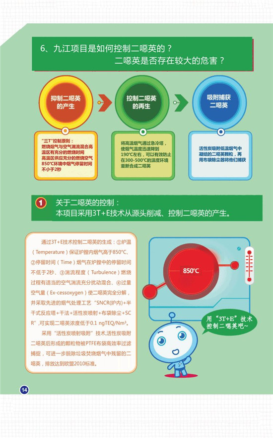 值得一提的是,九江垃圾焚燒發(fā)電項目采用3T+E技術從源頭削減、控制二噁英的產(chǎn)生。即保持垃圾焚燒溫度不低于850℃,煙氣在850C高溫區(qū)停留時間大于2秒,煙氣在爐膛內(nèi)充分擾動混合,使垃圾焚燒產(chǎn)生的二噁英得以分解消失;同時,煙氣凈化系統(tǒng)中采用“活性炭噴射吸附”技術;可有效吸附垃圾在爐膛內(nèi)焚燒時未完全分解的二噁英,排放標準完全達到或優(yōu)于0.1 ng TEQ/Nm3。通過上述環(huán)保措施處理后,二噁英的排放將達到歐盟2010標準(目前世界煙氣排放最高標準)。