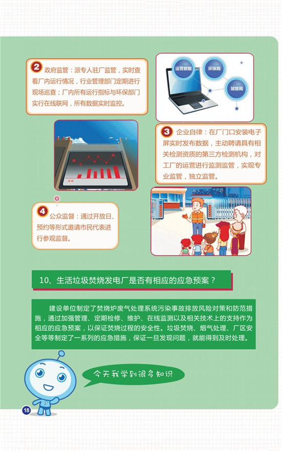 “我們制定了楚燒爐廢氣處理系統(tǒng)污染事故排放風(fēng)險(xiǎn)對(duì)策和防范措施,通過(guò)加強(qiáng)管理、定期檢修、維護(hù)、在線監(jiān)測(cè)以及相關(guān)技術(shù)上的支持作為相應(yīng)的應(yīng)急預(yù)案,以保證焚燒過(guò)程的安全性。垃極焚燒煙氣處理、廠區(qū)安全等等制定了一系列的應(yīng)急措施,保證一且發(fā)觀問(wèn)題,就能得到及時(shí)處理。”光大國(guó)際有關(guān)負(fù)責(zé)人滿懷信心地介紹說(shuō)。