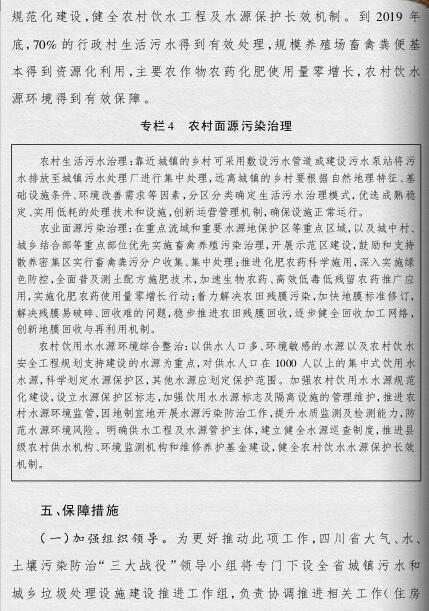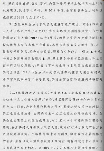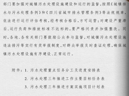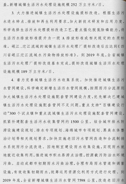 四川省政府印發(fā)了《四川省城鎮(zhèn)污水處理設(shè)施建設(shè)三年推進(jìn)方案》。《方案》提出,今年成都市建成區(qū)要全部消除黑臭水體,到2019年,全省城鎮(zhèn)基本具備污水收集能力,地級(jí)及以上城市建成區(qū)黑臭水體比例控制在10%以內(nèi),全面實(shí)現(xiàn)城鎮(zhèn)污水處理設(shè)施運(yùn)行規(guī)范化和監(jiān)管信息化,實(shí)現(xiàn)超標(biāo)工業(yè)廢水零排放,70%的行政村生活污水得到有效處理。