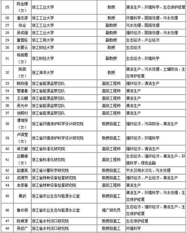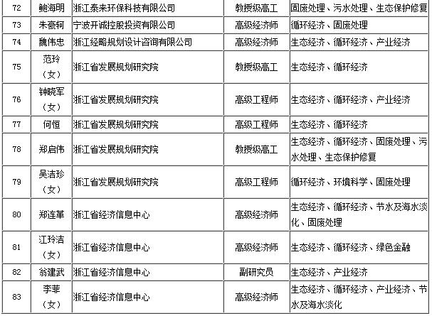 浙江省綠色循環(huán)發(fā)展專(zhuān)家?guī)鞂?zhuān)家名單