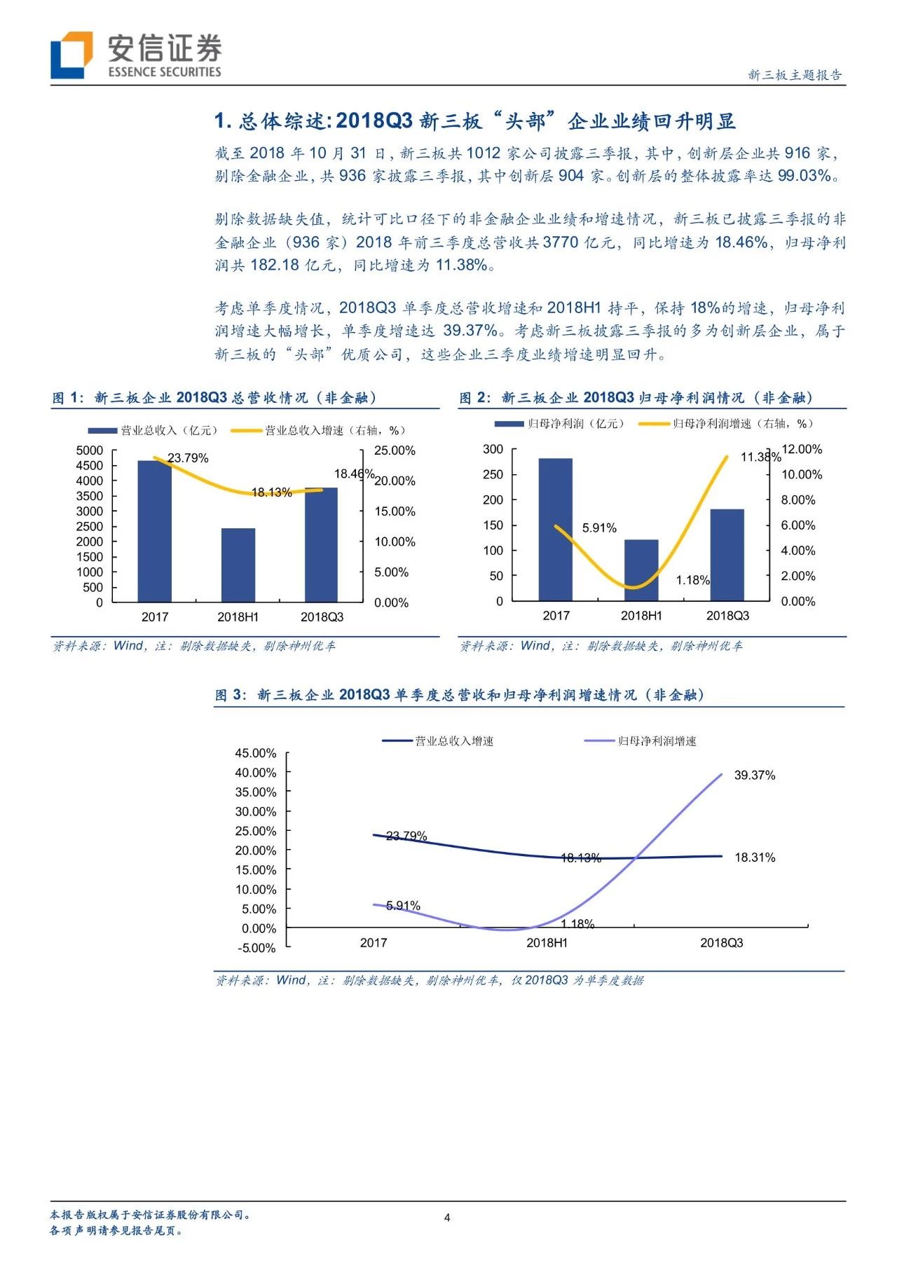 總體綜述: 2018Q3新三板“頭部”企業(yè)業(yè)績(jī)回升明顯