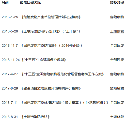 表2. 固廢處理利用領(lǐng)域近年重點政策法規(guī)