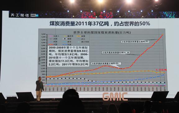 城市化過程當中、工業(yè)化過程當中需要用能源,需要供電、供熱等等。在中國我們過去全世界煤炭使用的情況,在中國支持工業(yè)化、城市化的過程主要能源是煤炭。特別是在2000年之后紅色的煤炭消耗量的增量在飛速的增長。這三個指標上可以看出,我們的工業(yè)化速度是非常快的。