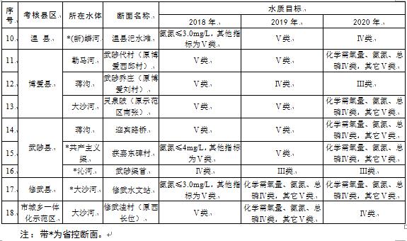8.推進(jìn)水污染綜合整治及水生態(tài)保護(hù)修復(fù)。加強(qiáng)河湖水污染綜合整治及水生態(tài)保護(hù)、修復(fù)等。針對沁河(武陟渠首斷面),相關(guān)縣(市)要制定實(shí)施河流水質(zhì)提升專項(xiàng)方案,確保到2019年斷面水質(zhì)達(dá)到或好于Ⅲ類;針對蟒河、共產(chǎn)主義渠、大沙河等污染較重河流(水體),相關(guān)縣(市)要制定實(shí)施整治方案,確保到2019年蟒河溫縣汜水灘、共產(chǎn)主義渠獲嘉東碑村、大沙河修武水文站斷面水質(zhì)達(dá)到或好于Ⅴ類,到2020年蟒河溫縣汜水灘斷面水質(zhì)達(dá)到或好于Ⅳ類。(市住房城鄉(xiāng)建設(shè)局、水利局、環(huán)境保護(hù)局牽頭,市發(fā)展改革委、財(cái)政局、林業(yè)局參與,各縣(市)區(qū)政府、市城鄉(xiāng)一體化示范區(qū)管委會(huì)負(fù)責(zé)落實(shí))
