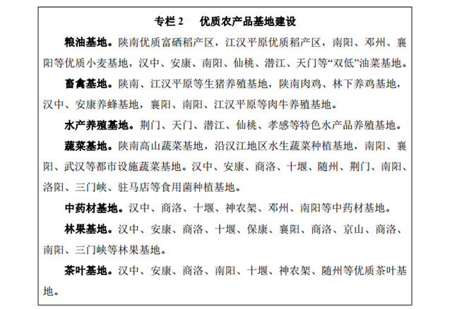 推進現(xiàn)代農(nóng)業(yè)發(fā)展。發(fā)展農(nóng)產(chǎn)品加工業(yè),統(tǒng)籌推進農(nóng)產(chǎn)品初加 工、精深加工和綜合利用加工,延長產(chǎn)業(yè)鏈條。拓展農(nóng)業(yè)多功能性, 推進農(nóng)業(yè)與旅游、教育、文化、健康養(yǎng)老等產(chǎn)業(yè)深度融合,發(fā)展休 閑農(nóng)業(yè)、觀光農(nóng)業(yè)、體驗農(nóng)業(yè)、創(chuàng)意農(nóng)業(yè)等新業(yè)態(tài)。做好農(nóng)村產(chǎn)業(yè) 融合發(fā)展“百縣千鄉(xiāng)萬村”試點示范工作,打造一批農(nóng)村產(chǎn)業(yè)融合發(fā) 展示范園。加快農(nóng)業(yè)科技創(chuàng)新能力條件建設,聯(lián)合開展農(nóng)業(yè)氣象、 病蟲害監(jiān)測預警、動植物疫病防治等關鍵技術研發(fā)和基礎設施建 設。支持漢中、南陽、十堰、荊門、仙桃、潛江、武漢等國家農(nóng)業(yè) 科技園建設,推進農(nóng)業(yè)科技創(chuàng)新聯(lián)盟發(fā)展。建立全程可追溯、互聯(lián) 共享的農(nóng)產(chǎn)品質量安全信息平臺。