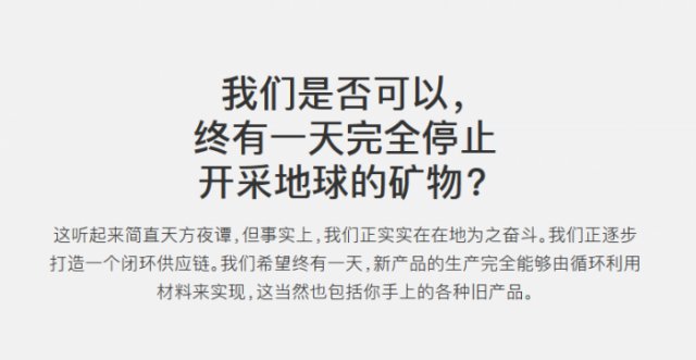新聞總是要相關(guān)聯(lián)來(lái)看,就在一周左右前,蘋果公司發(fā)布了 2017 年度的環(huán)境責(zé)任報(bào)告,這份報(bào)告顯示,蘋果正在采取各項(xiàng)措施減少產(chǎn)品材料對(duì)于礦業(yè)的依賴,逐漸停止對(duì)新資源的開(kāi)采,并且將成為第一個(gè)承諾只使用回收金屬、稀土和其它礦產(chǎn)資源的大型科技公司。在報(bào)告中蘋果表示,公司計(jì)劃打造一個(gè)封閉的循環(huán)制造系統(tǒng),通過(guò)回收資源進(jìn)行金屬和稀土元素的重新利用實(shí)現(xiàn)對(duì)環(huán)境的貢獻(xiàn)。
